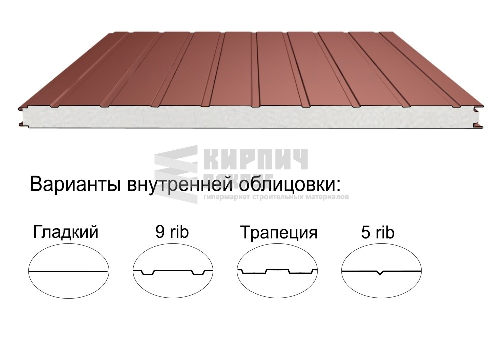 В интернет-магазине "Кирпич Вокруг" Вы можете купить Стеновая трёхслойная сэндвич-панель 9 rib 50мм 1190мм с видимым креплением пенополистирол Полиэстер Доборник в Вологде, а наши специалисты готовы вам помочь с выбором по адресу: , или оказать консультацию по телефону: .